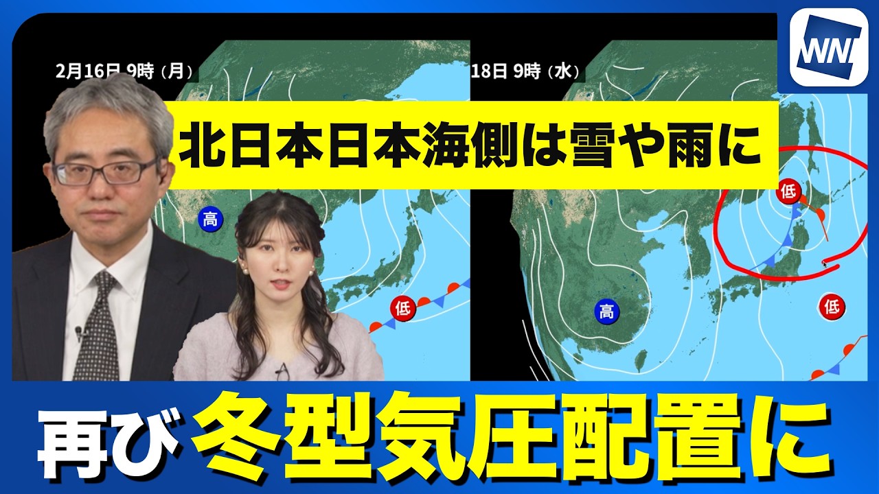 週明け16日(月)にかけては、一時的に冬型の気圧配置へ移行する見込みです。寒気が再び南下し、北日本の日本海側を中心に雪や雨の降る空に戻ります。