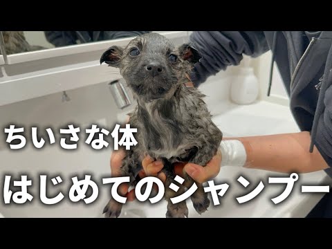 保健所から帰宅、初めてのお風呂で温もりを知る保護犬/自己紹介もしています