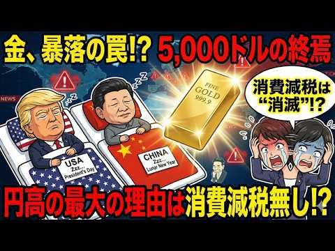 【緊急】金価格5,000ドルの衝撃!米中休場でも円高が止まらない?消費減税消滅の裏側を徹底解説