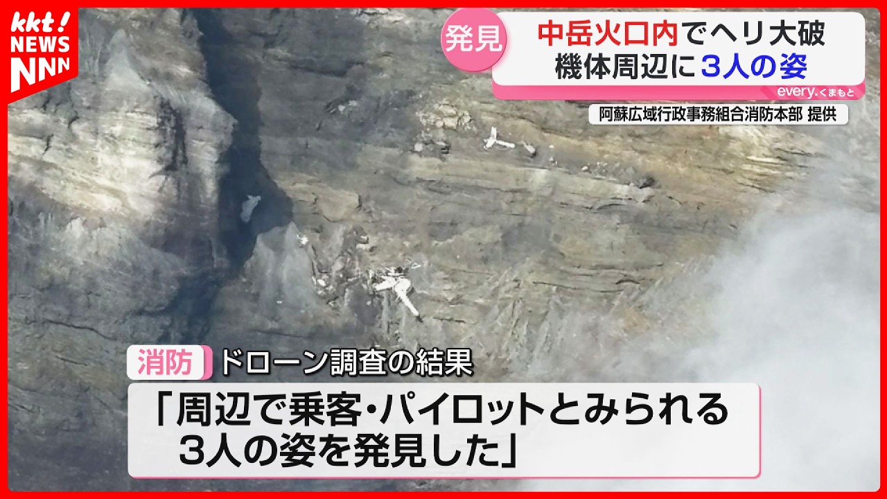 阿蘇遊覧ヘリ墜落事故「生存の可能性は極めて低い」火口で3人発見 重機で引き上げへ 1月20日に阿蘇市の中岳第一火口で遊覧ヘリが大破した事故で、消防は18日「火口内のドローン調査などで、墜落したヘリの周辺に3人の姿を発見した。 2026年2月18日 KKT「news every.くまもと」で放送 最新ニュースはこちらから▼ https://news.ntv.co.jp/n/kkt/new/all #熊本 #ニュース #事件 #事故 #日テレ #日テレニュース NEWSnews japanパイロットヘリ事件事故台湾墜落大破機体火口火山熊本観光速報遊覧阿蘇