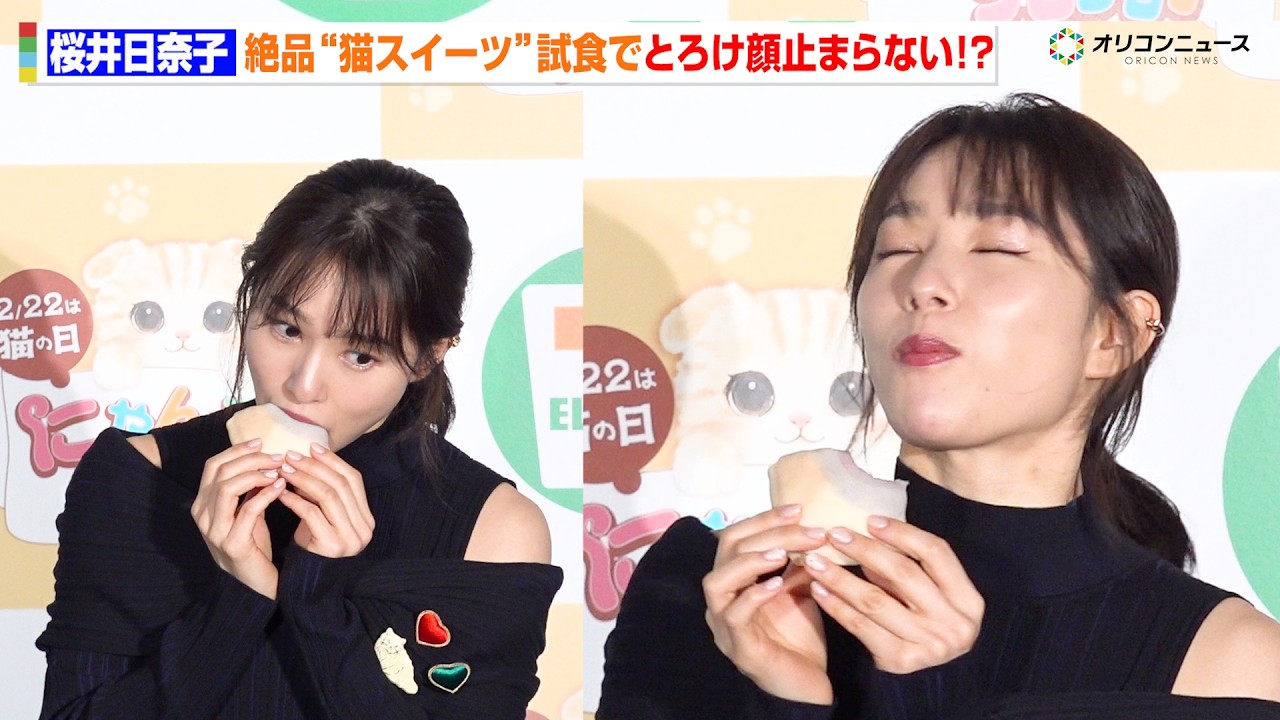 桜井日奈子、“絶品スイーツ”試食にキュートなとろけ顔が止まらない!? セブン‐イレブン『にゃんこ発見!』新商品発表会・試食会