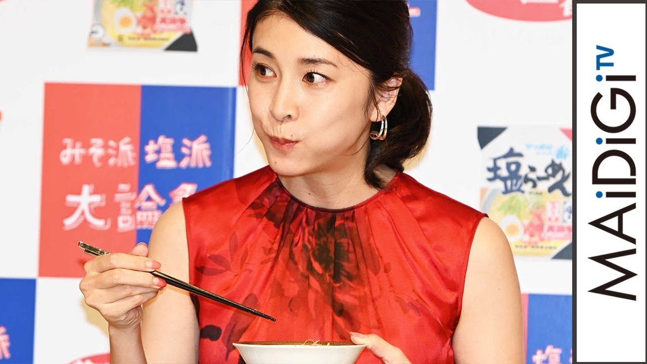 両派のアレンジレシピのラーメンを食べた竹内さんは、最終ジャッジを促されるも「もうちょっとしゃべっていてもらっていいですか」と食べ続け、中川さんから「女優さんが急いでラーメンを食べる姿、激レアですよね」と驚かれていた。