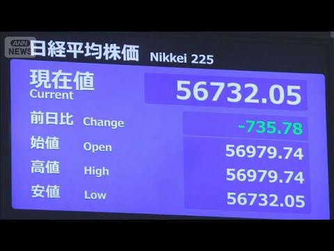 日経平均株価一時700円超の下落 イラン情勢を巡る投資家の不安が背景(午前10時)(2026年2月20日)