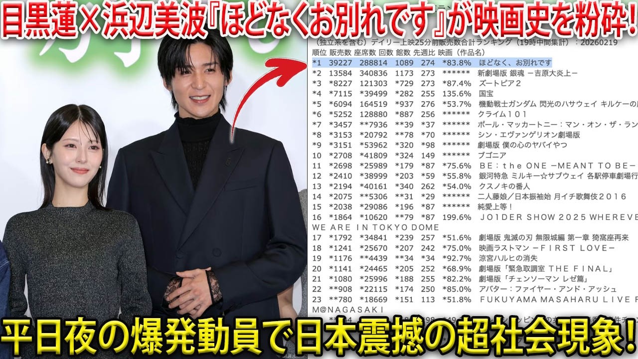 目黒蓮と浜辺美波主演『ほどなくお別れです』が記録を次々と破壊し続けている映画界の歴史的瞬間、驚異的な数字が示す平日夜の劇場動員爆発と日本中を震撼させた社会現象の全貌
