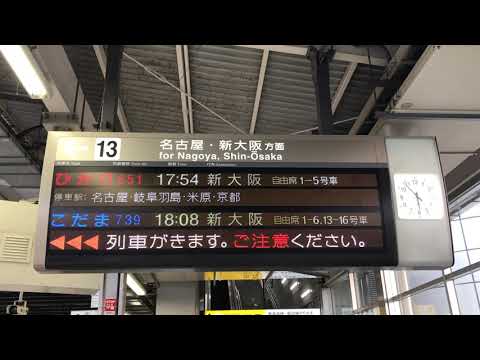豊橋駅にひかり号到着の際の駅員による案内と接近放送や出発の際の放送と駅員による注意のところがこの動画に入っています