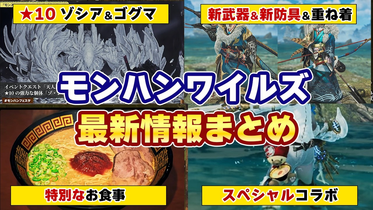 モンハンワイルズ最新情報!★10のゾシア&ゴグマジオス確定『一蘭』『USJ』コラボクエスト新装備や新武器、新重ね着、チャーム、期間限定のお食事など新しいイベクエ情報まとめ【モンスターハンターワイルズ】