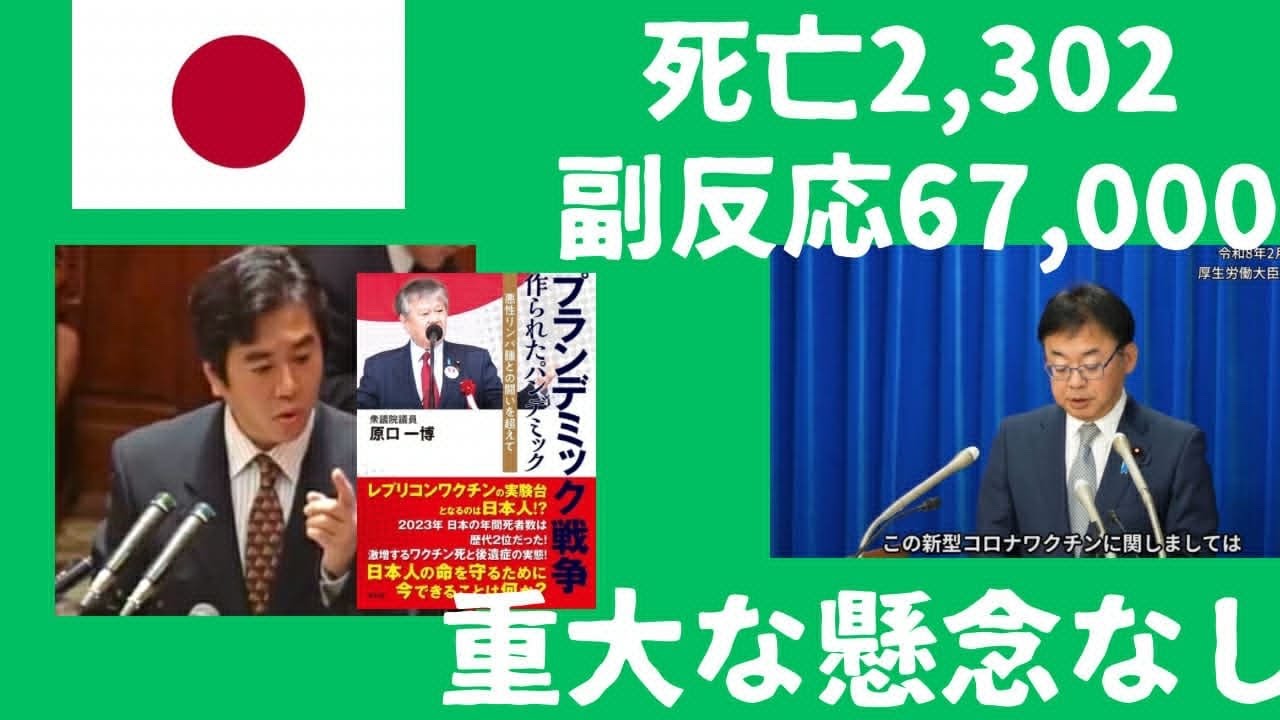 厚労大臣、新型コロナワクチン副反応67,000件・死亡2,302件を公表も「重大懸念なし」