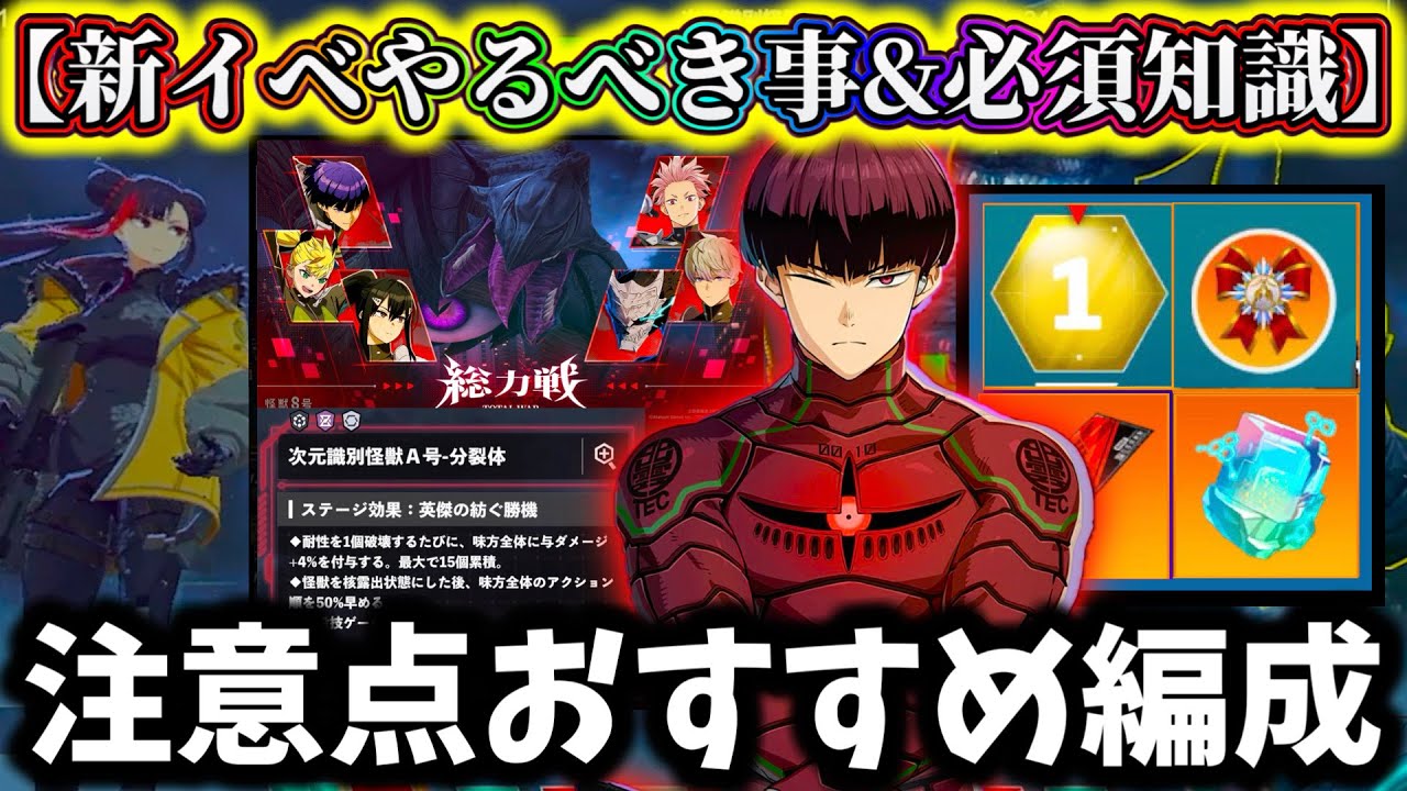 【怪獣8G】新イベント絶対にやるべき事&注意点解説!世界ランキング激熱報酬おすすめ攻略編成解説!総力戦毎日やるべき事【怪獣8号 THE GAME】【新作ゲームアプリ】 【Xアカウント↓】 https://x.com/248GamesNi 怪獣8号 THE GAME #怪獣8G #怪獣8号 #kaijuno8 gameGamingKaijuNo8ゲーム攻略怪獣8G怪獣8号最強ランキング