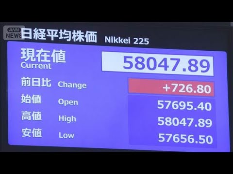 日経平均株価がおよそ2週間ぶりに5万8000円台を回復し、取引時間中の史上最高値を更新しました。