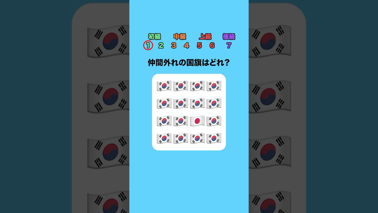 仲間外れの国旗はどれ? #クイズ #ミニゲーム #暇つぶし 【企画・構成・編集】りょう 【音声】VOICEVOX:青山流星 【音声(3・2・1)】あみたろの声素材工房(https://amitaro.net/) 【イラスト】「いらすとや」「イラストAC」 【効果音】効果音ラボ 【音楽】「なぞなぞ」/作(編)曲 : Make a field Music celebrityクイズひまつぶしミニゲームりょう仲間はずれ間違い探し