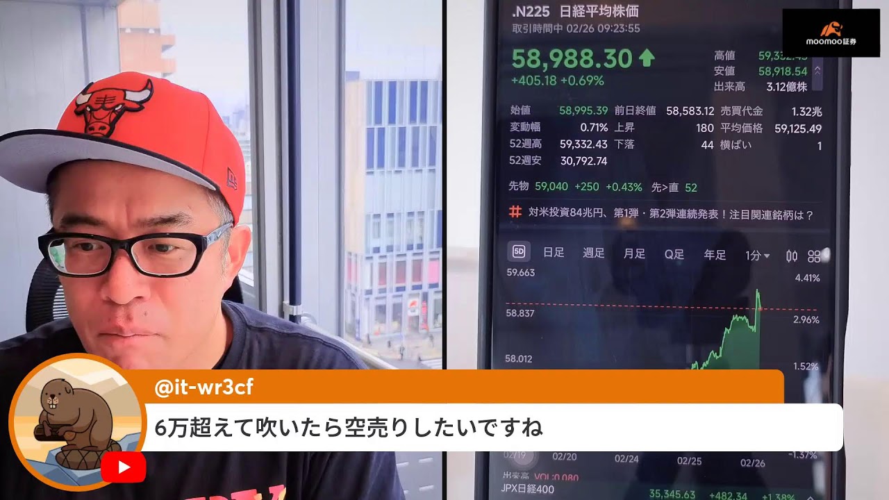 日経が一時6万円に!NVIDIA好決算でリスクオン!BTCも急反発で祭りだ!