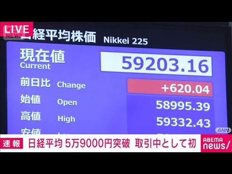 日経平均株価は取引時間中として初めて5万9000円を突破しています。