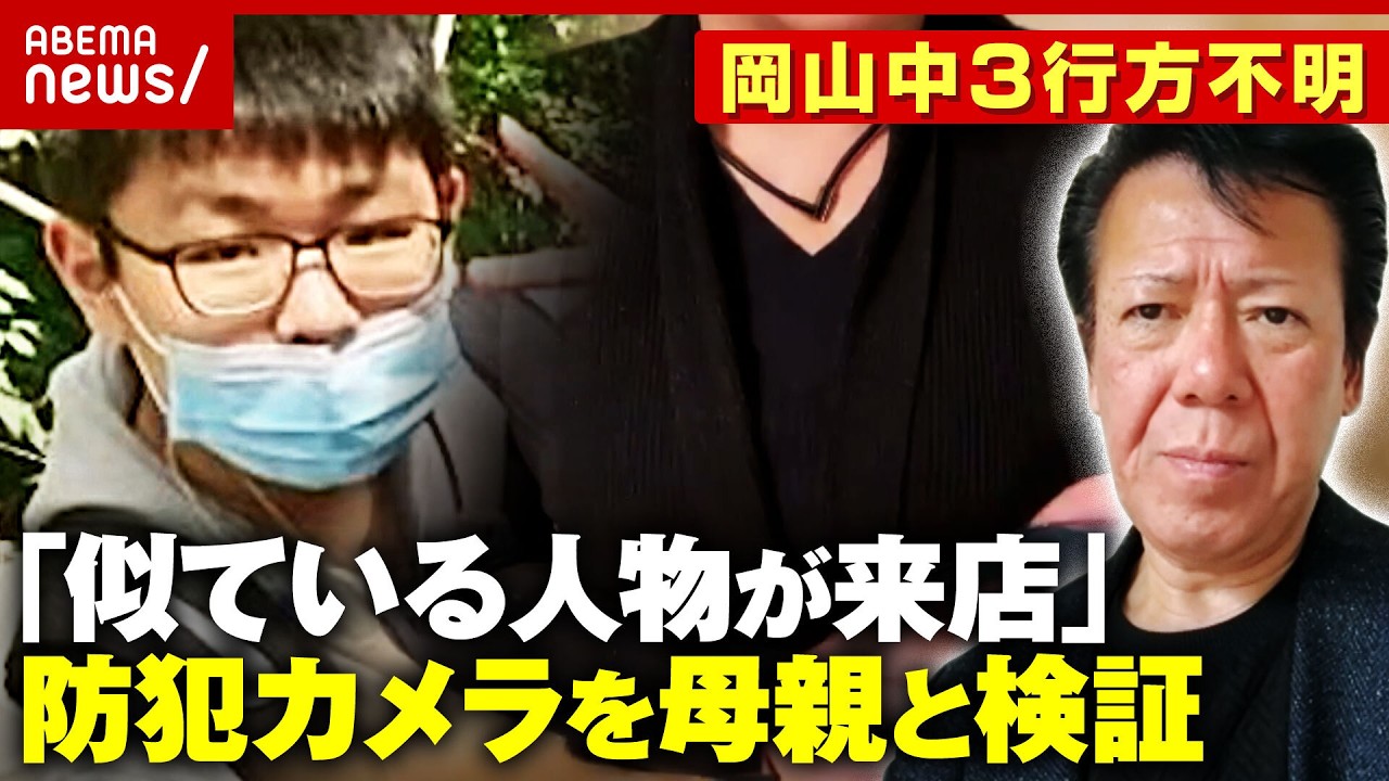 【中3行方不明】岡山・梶谷恭暉さん「似た人物が来店」独自の目撃情報…母親「似ているかも」防犯カメラを検証|ABEMA的ニュースショー