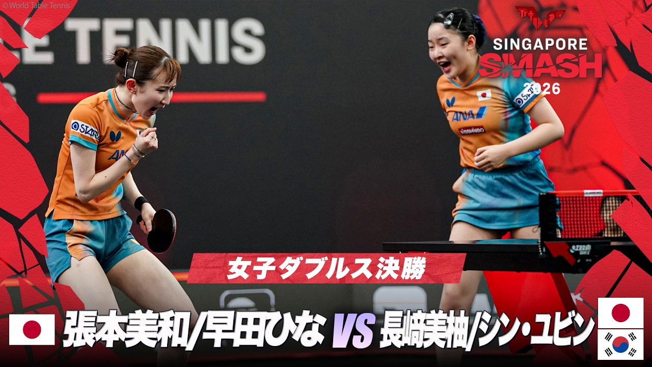 【決勝】張本美和/早田ひな vs 長﨑美柚/シン・ユビン|WTTシンガポールスマッシュ2026 女子ダブルス