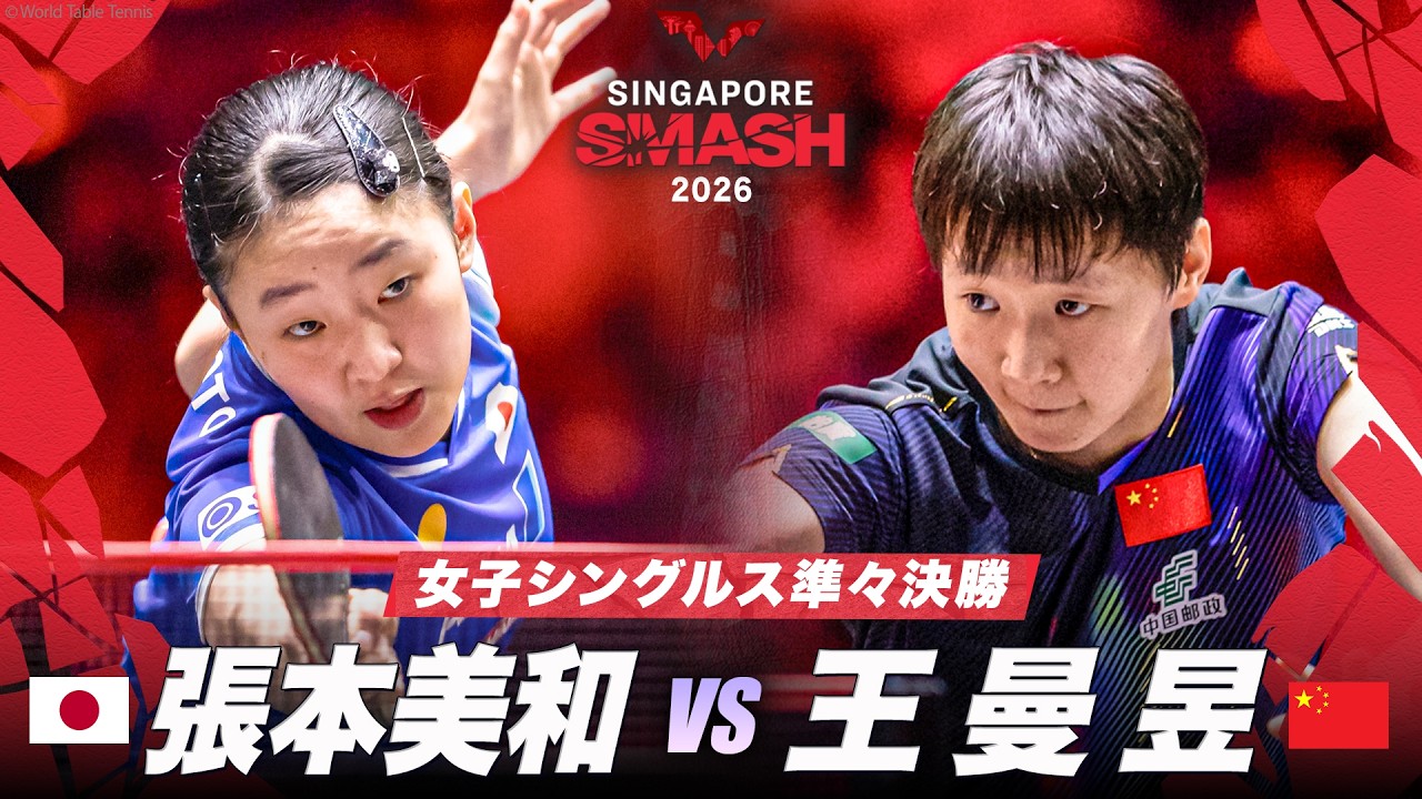 【準々決勝】張本美和 vs 王曼昱|WTTシンガポールスマッシュ2026 女子シングルス