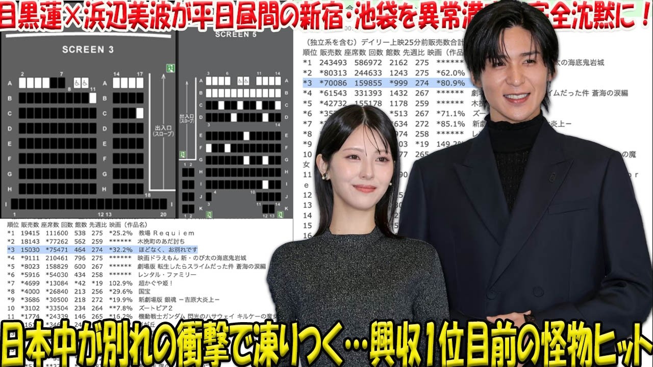 目黒蓮と浜辺美波が主演する『ほどなくお別れです』が、平日昼間の新宿・池袋の劇場を異常な満席状態で完全に沈黙させ、日本中に別れの衝撃が広がり続け、興行収入1位を目前に捉えるほどの異様な勢いを見せている