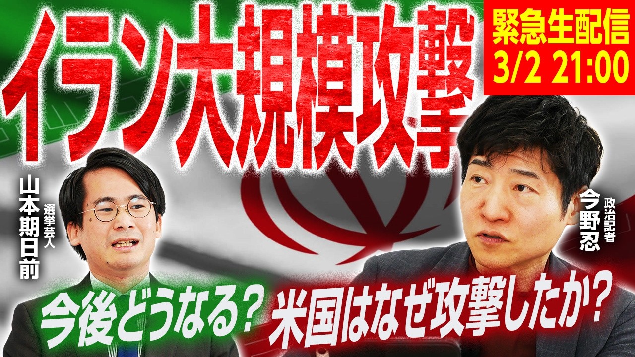 【21時より緊急生配信!】米・イスラエルはなぜイランに大規模攻撃を仕掛けたのか?安全保障や中東情勢に詳しい今野忍記者が徹底解説!【今野忍×山本期日前】|選挙ドットコムちゃんねる