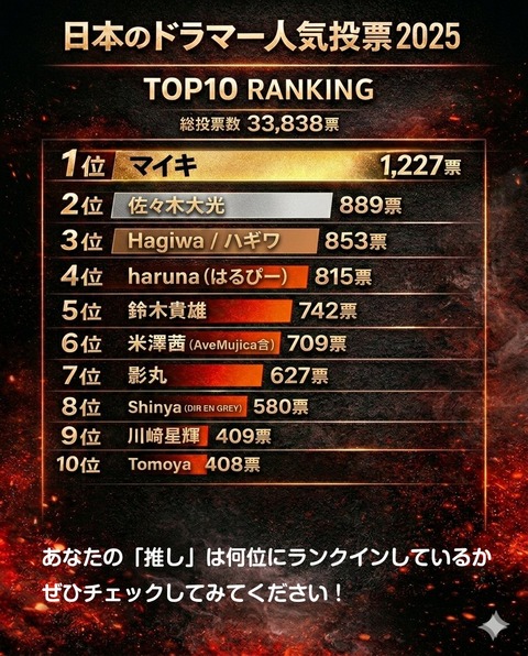 ソース https://drummerjapan.com/japan-drummer-2025-results-1-100_final/