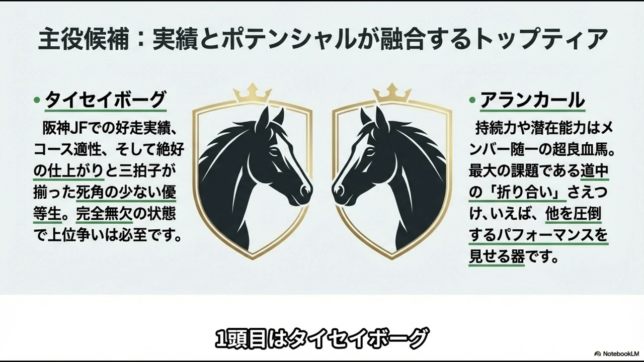 さらに、現在の時計が出やすい「超高速バイアス」の馬場状態と、落ち着いた展開からの「究極の直線勝負」にどの馬が適応できるかを紐解きます。