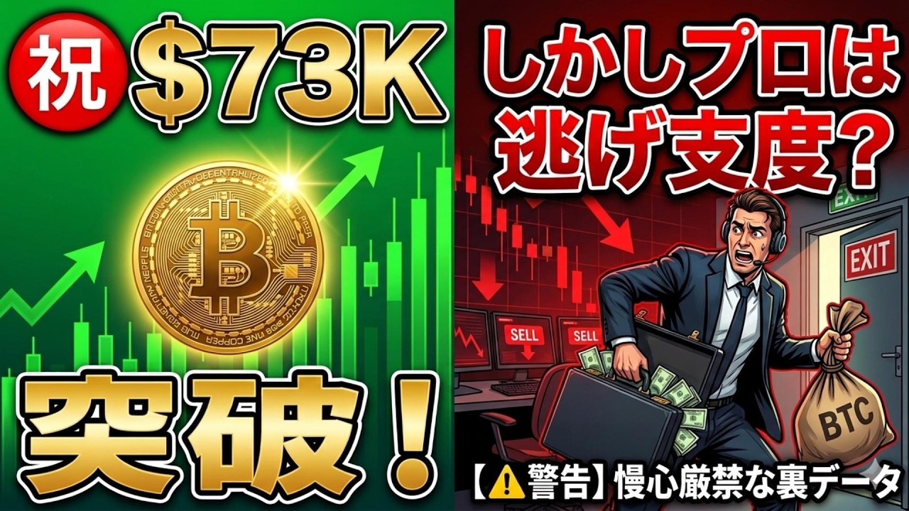 【仮想通貨 ビットコイン】【警告】㊗$73K突破!しかしプロは逃げ支度?長期上昇も「慢心厳禁」な裏データ(朝活2087)