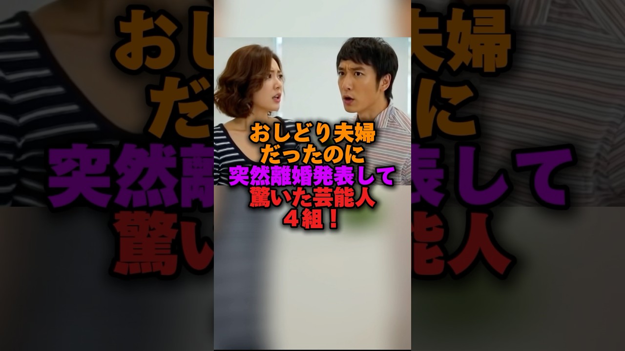 Share Facebook Twitter Pinterest LinkedIn おしどり夫婦だったのに突然離婚発表して驚いた芸能人4選! #女性芸能人 #雑学ショート #40代ショート NEWS離婚発表