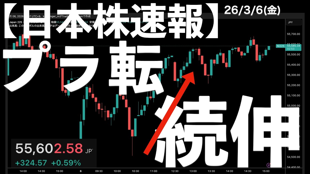 【日本株速報】26/3/6 マイナスからのプラス転換!続伸! #日本株 #半導体 #topix #nvidia