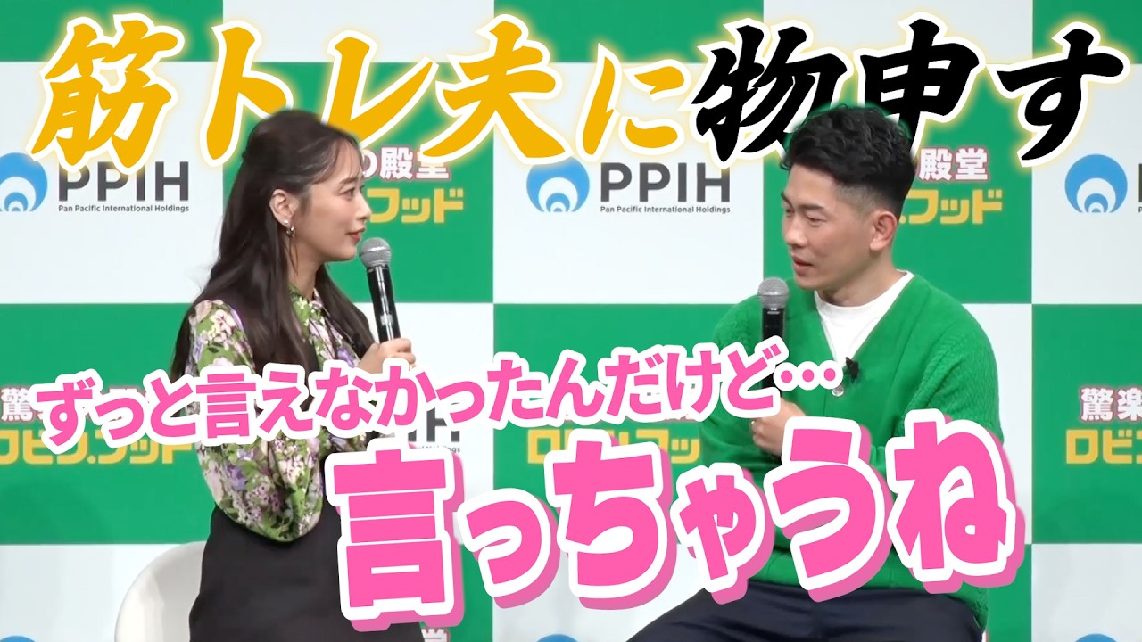 株式会社パン・パシフィック・インターナショナルホールディングス(以下、PPIH)は、4月24日(金)新業態店舗『驚楽の殿堂 ロビン・フッド』の第一号店『ロビン・フッド甚目寺店』を愛知県あま市にオープンすることを、3月3日(火)に開催された「PPIH 新業態(食品強化型ドンキ)戦略発表会」で発表。発表会には、ジャングルポケットの太田博久とモデル・近藤千尋夫妻がゲストとして登壇。おしどり夫妻の2人は、夫婦共演を喜ぶも近藤が筋トレ好きの太田へずっと言えなかった本音を暴露した。