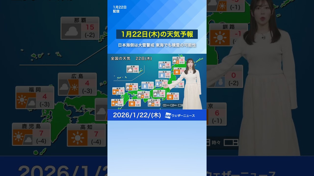 【1月22日(木)の天気予報】日本海側は大雪に警戒 東海でも積雪の可能性 #通勤タイパ #天気 #news #今日の天気 ウェザーニュースとauのコラボレーション 朝に役立つ情報をタイムパフォーマンスよくショートに手に入れよう。 通勤の時間に「天気」「学び」「癒し」「季節」「占い」などの情報をわかりやすく、楽しくショート動画で視聴できます。 毎朝の通勤時間が待ち遠しくなる! #pr 2026NEWSアナウンサーウェザーニュースニュース予報台風地震天気日本の天気予報気温気象気象予報士減災防災