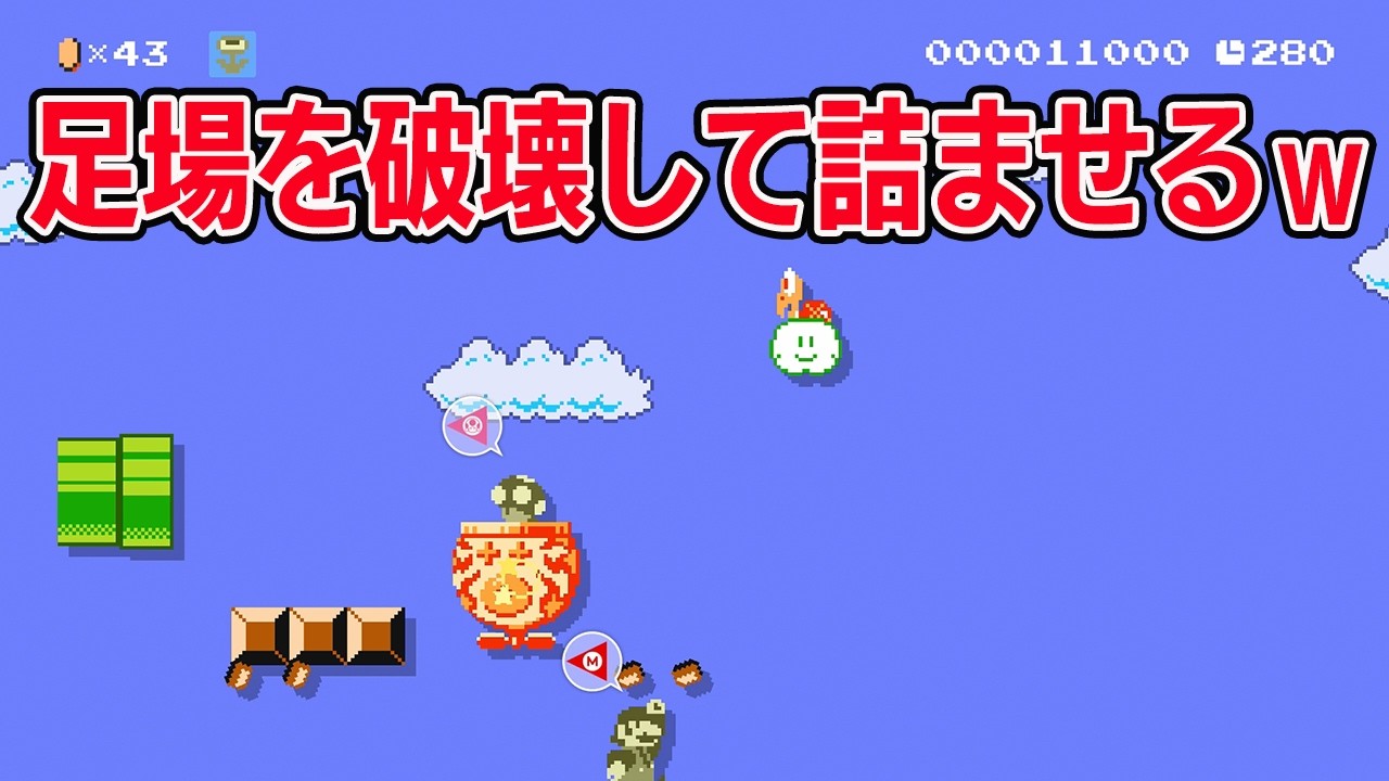 足場を破壊して詰ませるwwww【マリオメーカー2 みんなでバトル】