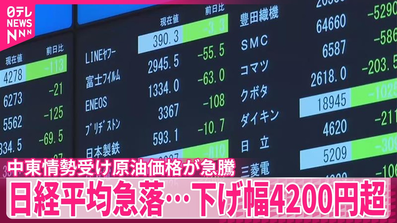 #日経平均株価 #急落 #中東情勢 #日テレ #ストレイトニュース #ニュース