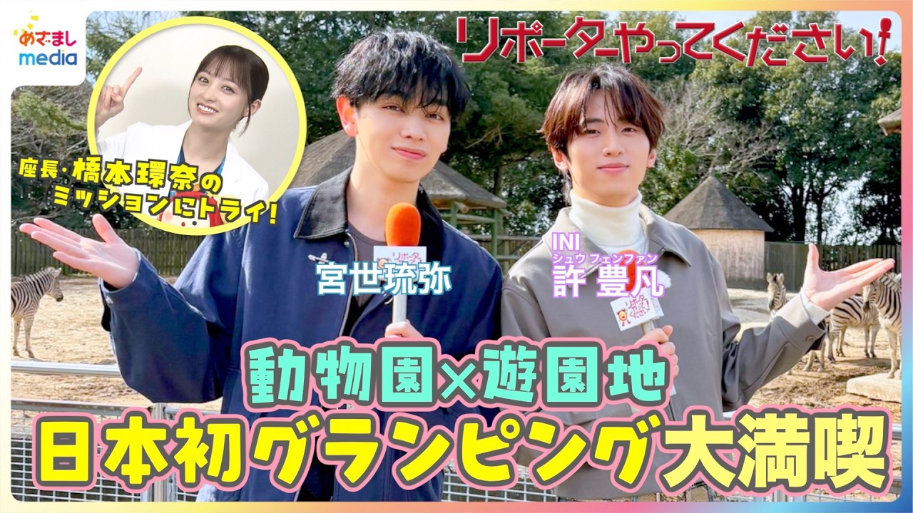 宮世琉弥と許豊凡(INI)が動物園や遊園地を同時に楽しめる最新グランピングを全力体験!月9ドラマ『ヤンドク!』座長・橋本環奈からのミッションに絶叫!?【リポーターやってください!】