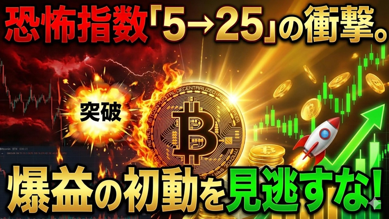 【仮想通貨 ビットコイン】恐怖指数「5→25」の衝撃。歴史が証明する『爆益の初動』を見逃すな!(朝活2093)