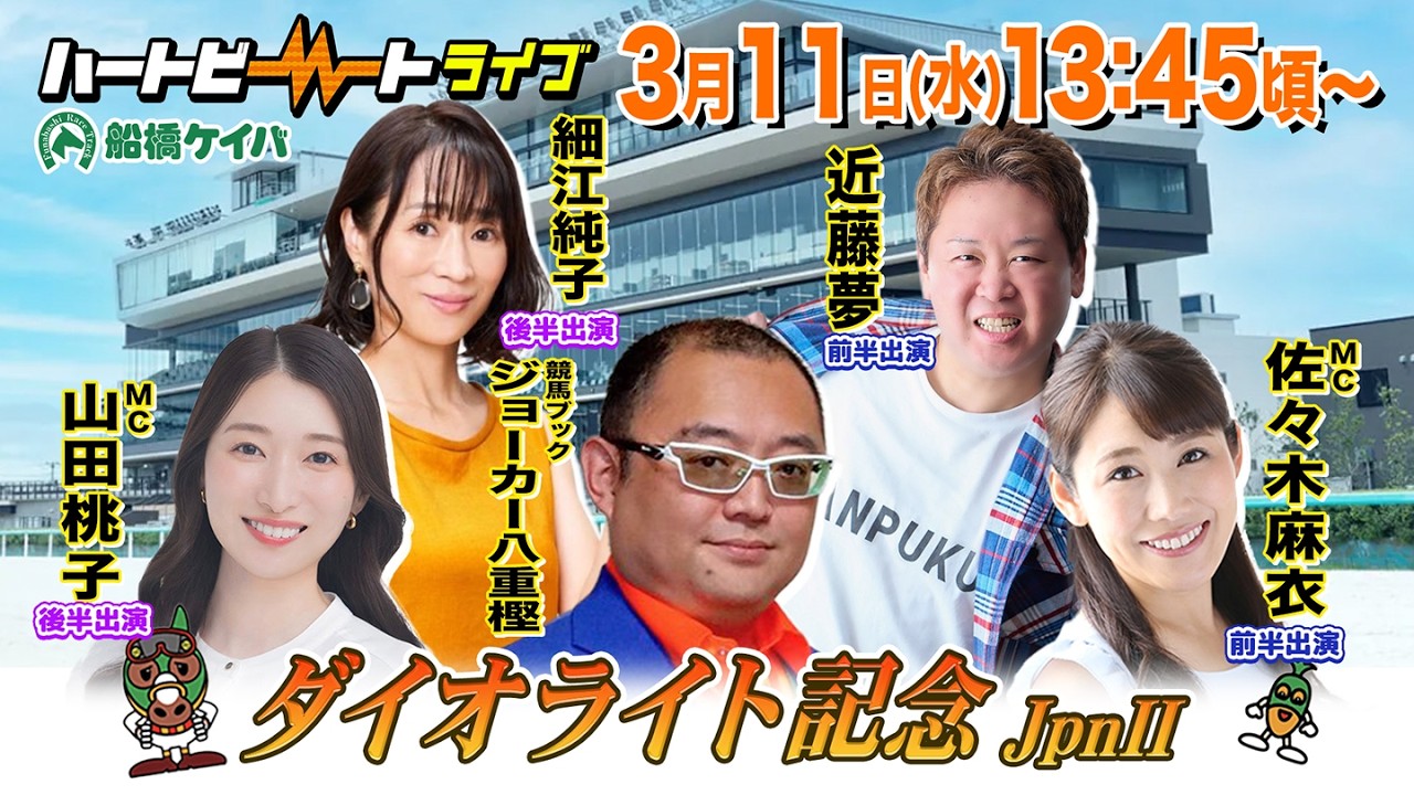 【船橋競馬】ハートビートライブ #243【前半 進行:佐々木麻衣/ゲスト:近藤夢/解説:ジョーカー八重樫(競馬ブック)】【後半 進行:山田桃子/ゲスト:細江純子/解説:ジョーカー八重樫(競馬ブック)】