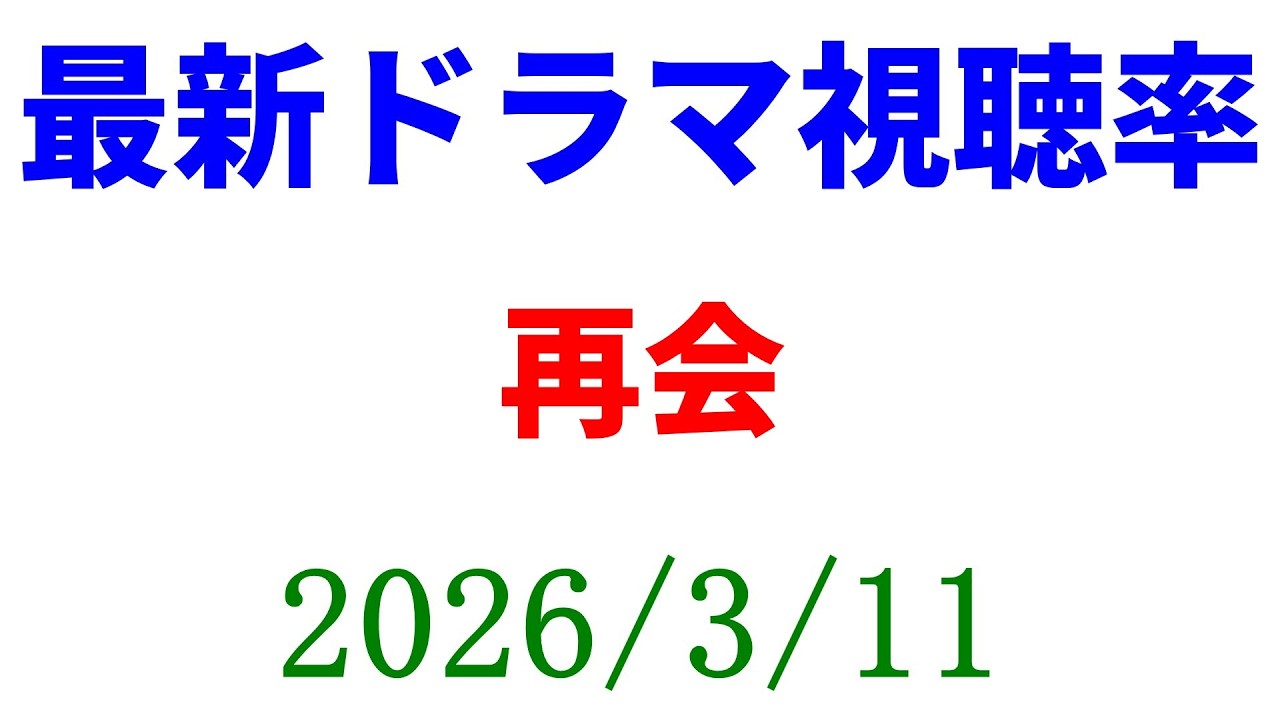 Share Facebook Twitter Pinterest LinkedIn 再会 第8話 視聴率ダウン!視聴率速報☆2026年3月11日 ### ☆Amazon欲しいものリスト https://www.amazon.jp/hz/wishlist/ls/3MTQPTNTTWFUH?ref_=wl_share <ツイッター> https://twitter.com/KkReview このチャンネルのメンバーになって特典にアクセスしてください: https://www.youtube.com/channel/UC8I3iWxXV7Zqa5PpAeAlcFA/join dramaTVドラマテレビドラマドラマドラマ視聴率レビュー感想考察視聴率