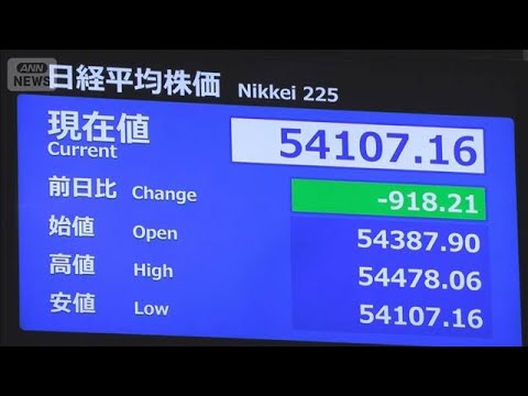 イラン情勢による不安定な値動きが続く日経平均株価は、12日は600円余り値下がりして取引が始まりました。下げ幅はその後一時900円を超えました。