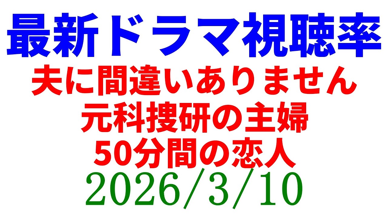 今期ドラマ全視聴率判明!視聴率速報☆2026年3月11日