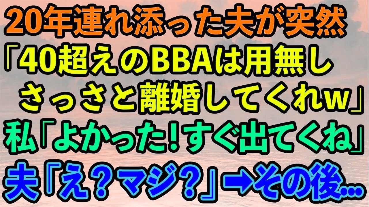 【スカッとする話】20年連れ添った夫から突然離婚宣言「40超えのBBAは用無しだわw」私「よかった!今すぐ出て行くね」夫「え?」→後日元夫が血相変えて現れて…【修羅場】