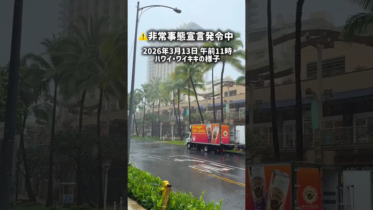 Share Facebook Twitter Pinterest LinkedIn 非常事態宣言中のハワイ・ワイキキの様子(2026年3月13日) ハワイ州は、強い低気圧「コナストーム(Kona Low)」の影響により、大雨や洪水、強風などの影響が予想されるとして、3月9日に非常事態宣言を発令しました。州や各郡では警戒態勢を強めており、オアフ島では12日午前7時、ホノルル市の緊急対策センターが稼働しました。非常事態宣言中のハワイ・ワイキキの様子をお届けします。#shorts NEWS緊急事態宣言
