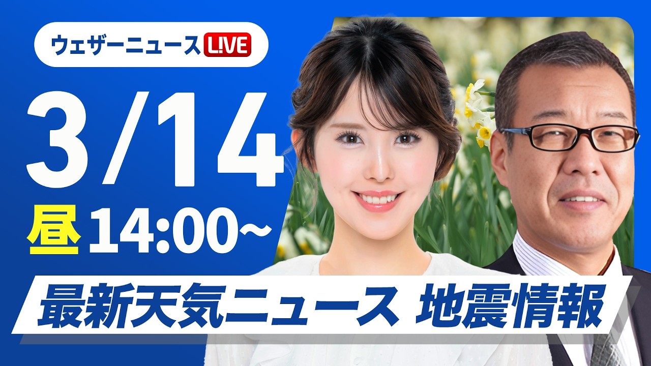 【ライブ】最新天気ニュース・地震情報 2026年3月14日(金) /太平洋側は穏やかな週末 伊豆諸島は荒天警戒〈ウェザーニュースLiVEアフタヌーン・小川千奈/森田清輝〉