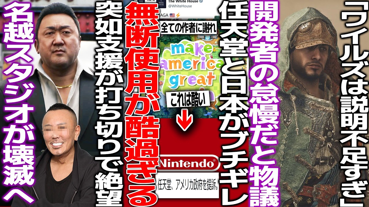 これは酷い。任天堂と日本がブチギレ…米国がぽこポケや他作品を政治利用で激怒&提訴/名越スタジオが危機..支援停止でヤバい/「ワイルズは説明不足」初心者ゲーマーが嘆いて議論が勃発