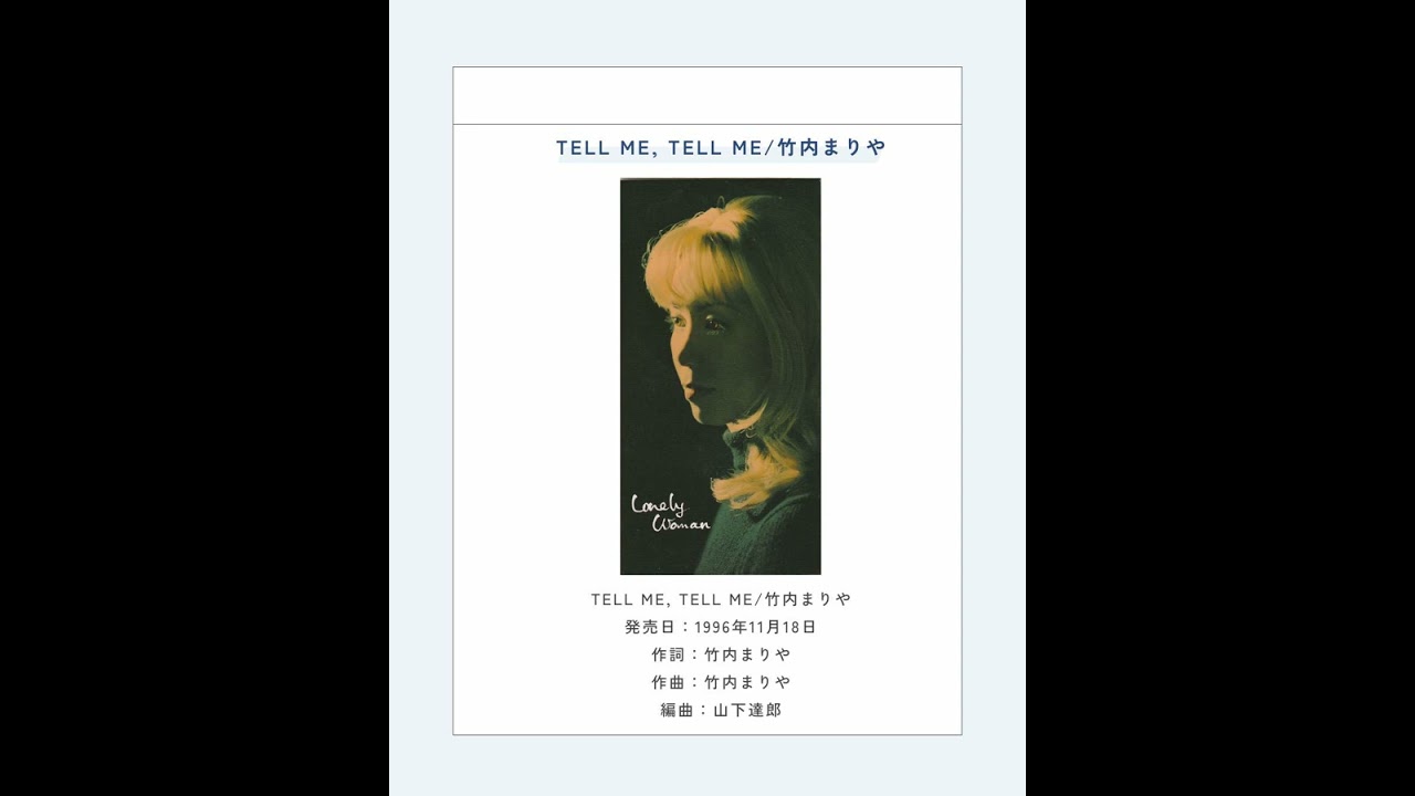 Share Facebook Twitter Pinterest LinkedIn Tell me, tell me/竹内まりや Tell me, tell me/竹内まりや 発売日:1996年11月18日 作詞:竹内まりや 作曲:竹内まりや 編曲:山下達郎 オリコン最高位:13位 ☆竹内まりや、26枚目のシングル。TBS系ドラマ『義務と演技』挿入歌。 celebrity竹内まりや