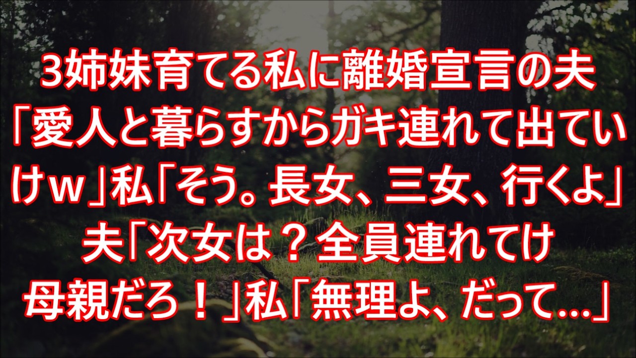 Share Facebook Twitter Pinterest LinkedIn 3姉妹育てる私に離婚宣言の夫「愛人と暮らすからガキ連れて出ていけw」私「そう。長女、三女、行くよ」夫「次女は?全員連れてけ母親だろ!」私「無理よ、だって…」 NEWS離婚宣言