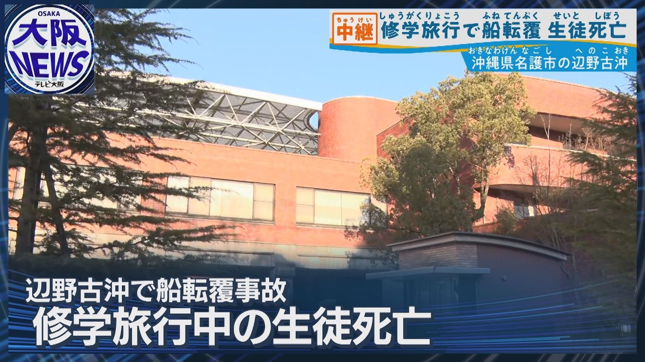 沖縄県名護市辺野古沖で船2隻が転覆し、同志社国際高校の修学旅行生18人が乗船していたうち、2年生の武石知華さん(17)が死亡しました。船長も死亡し、他に2人がけがをしたとみられています。現場には波浪注意報が出ていました。学校は緊急対策本部を設置し、保護者説明会や記者会見の準備を進めています。