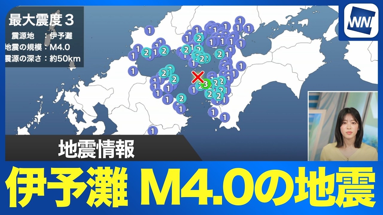 【地震情報】伊予灘でM4.0の地震 愛媛県伊方町で震度3 津波の心配なし