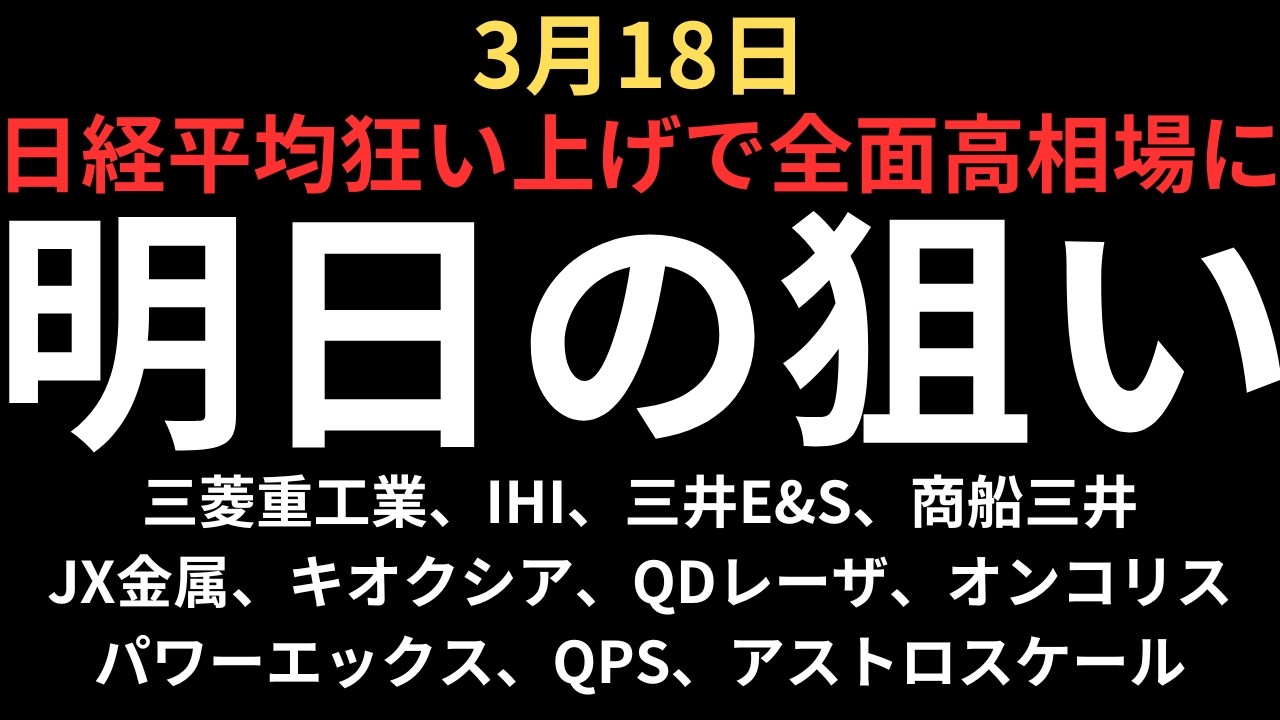 【日本株狂い上げの全面高】チャートで見る明日の注目銘柄|三菱重工業、IHI、三井E&S、商船三井、JX金属、キオクシア、QDレーザ、オンコリスバイオ、パワーエックス、QPS、アクセルスペース