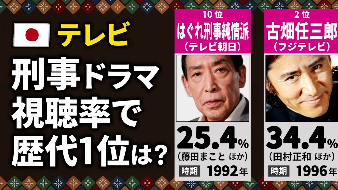 今回の動画は、テレビの刑事ドラマの「最高視聴率」ランキングです!