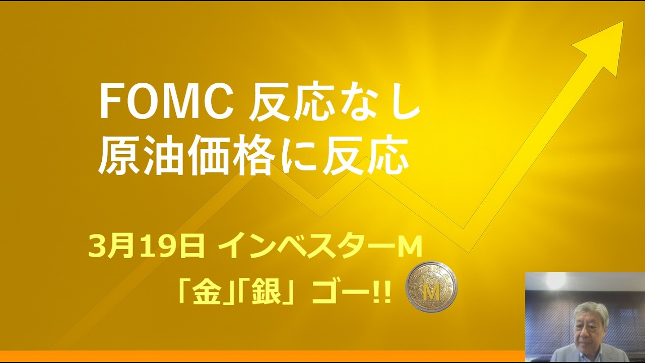 3月19日 インベスターM「金」「銀」ゴー!! @FOMC 反応なし @原油価格に反応 @原油高はまだまだ続く @本日のゴールド価格/シルバー価格予想