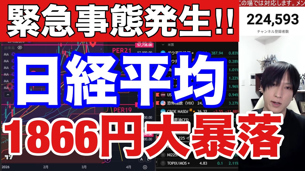 3/19【日経平均1900円大暴落‼】海外投資家も日本株4900億円売却‼中東情勢懸念でWTI原油高止まり。ドル円159円推移。利下げ期待後退で米国株、ナスダック、半導体株、仮想通貨下落