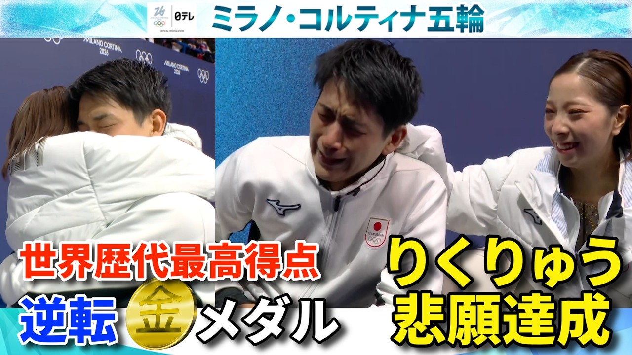 【“りくりゅう感動の瞬間”たっぷり!】三浦璃来&木原龍一ペアが歴代最高得点で逆転金メダル!|フィギュアスケート・ペア フリー|ミラノ・コルティナ五輪