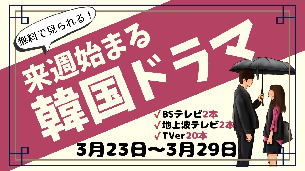 📺韓国ドラマ週間ガイド【3月23日~3月29日】 BS &地上波テレビで始まる4本を紹介👀TVer情報あり
